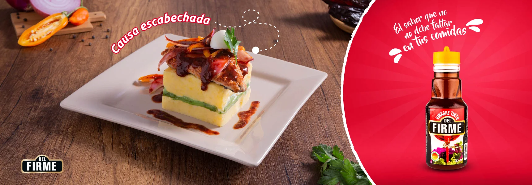 Para que la Causa Escabechada quede bien sabrosa, prepara el escabeche el día anterior. El Vinagre Tinto Del Firme acentuará el sabor del pescado y quedará delicioso.